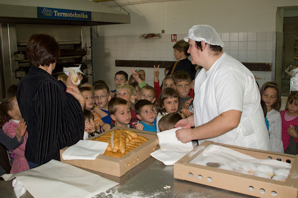 19.10.2010. - U sklopu obilježavanja Dana kruha predškolci Dječjeg centra Metković sa svojim tetama posjetili su pekarnicu tvrtke Metkovka gdje su ih njeni djelatnici upoznali s procesom proizvodnje kruha i peciva. Naravno, djeci su ponudili i da kušaju različite pekarske proizvode.