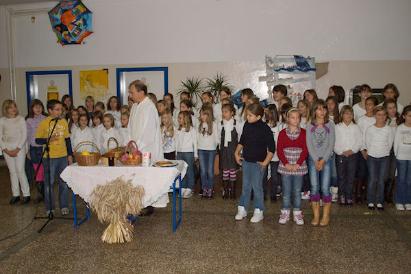 27.10.2010. - I OŠ Stjepana Radića priključila se obilježavanju Dana kruha. Jučer je prigodnim programom izražena zahvalnost za plodove zemlje u čemu su svojom pjesmom, recitacijama, likovnim uratcima i izložbom kruha i peciva sudjelovali učenici te škole. Na kraju je fra Paviša Norac Kevo blagoslovio plodove zemlje i proizvode ljudskih ruka nastale iz njih.