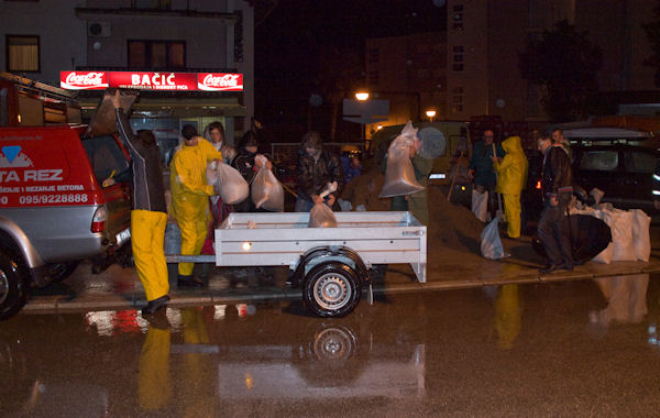 30.11.2010. - Obišavši večeras najugroženije dijelove grada vidjeli smo da situacija nešto gora nego prije nekoliko dana. Ipak voda ne raste toliko da bi noćas mogla ugroziti one u čije kuće do sada nije prodrla. Građani su, ipak, oprezni što smo mogli zaključiti po vrećama pijeska koje su pripremili za svaki slučaj.