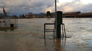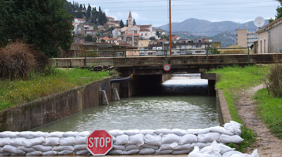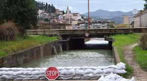 2.12.2010. - Crne vijesti o porastu vodostaja obistinile su. Naravno, nije bilo nekog vodenog vala koji nosi sve pred sobom, kako ga mnogi zamišljaju, ali vodostaj Neretve prešao je 410 cm. Točnije teško ga je odrediti jer je mjerna letva koja završava na 4 m potpuno potopljena.