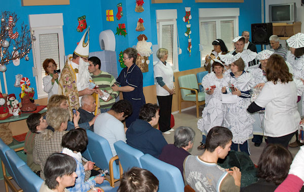 Metković, 11.12.2010. - Jučer je u Dom za starije i nemoćne i tjelesno ili mentalno oštećene osobe s malim zakašnjenjem došao sv. Nikola noseći vreću punu darova štićenicima Centra za rehabilitaciju koji djeluje u sklopu Doma.