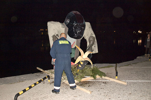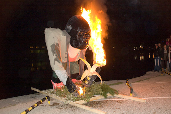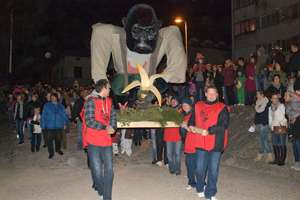 8.3.2011. - Na Trgu kralja Tomislava večeras se okupilo dosta svijeta kako bi pratilo suđenje Marku Krnjevalu kojega je ove godine predstavljao gorila u čijoj ruci iz banane iskače Hrvatska.