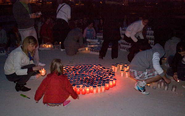 2.4.2011. - Već smo pisali da je u Srednjoj školi Metković u tijeku akcija izrade ždralova i srca u spomen na žrtve potresa u Japanu. Sinoć je u metkovskom parku za njih zapaljeno 1200 svijeća.