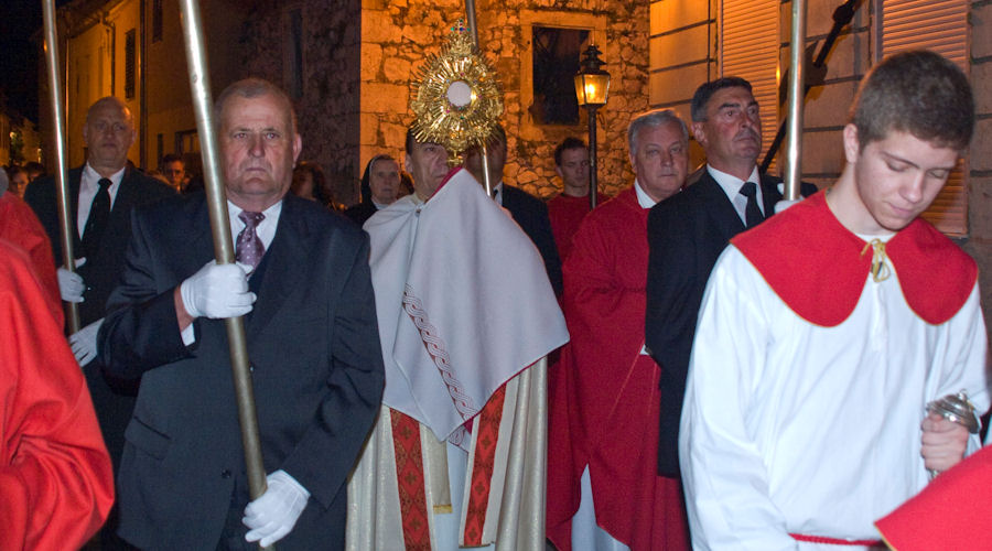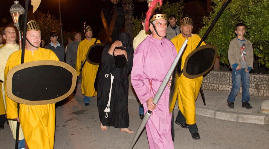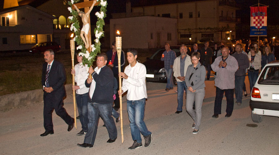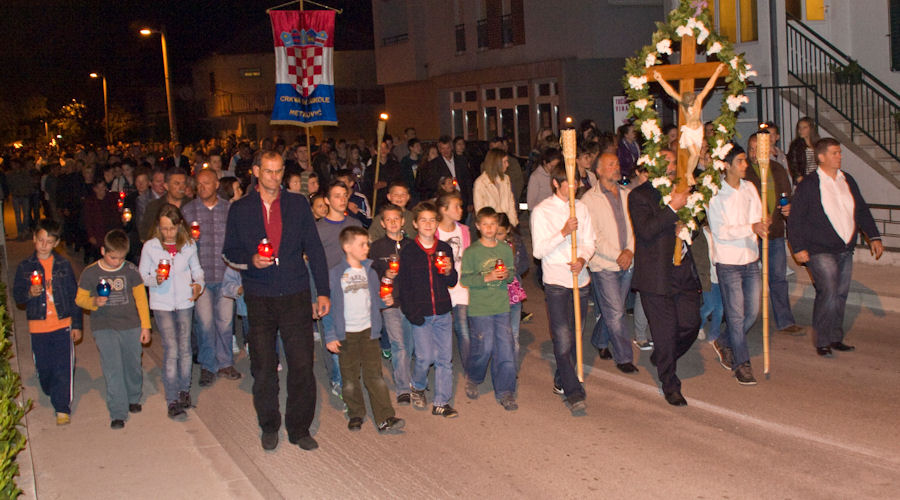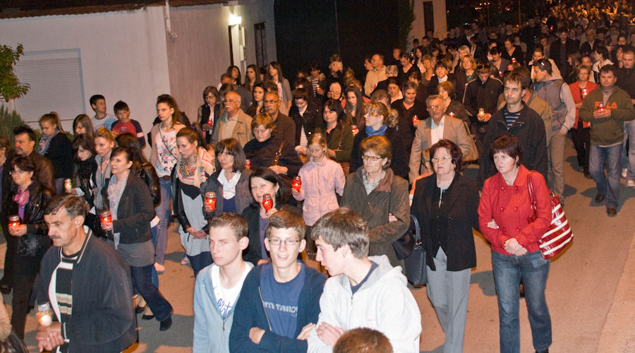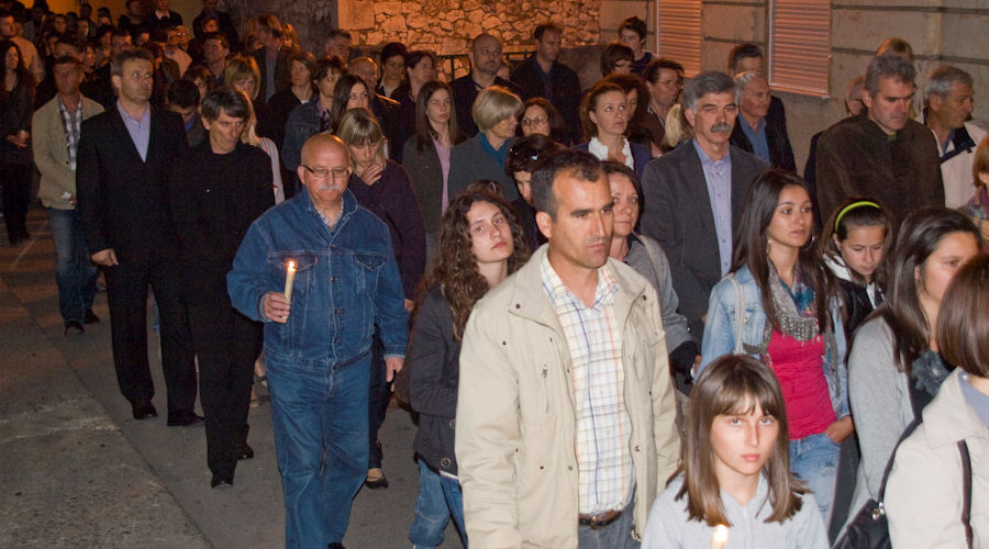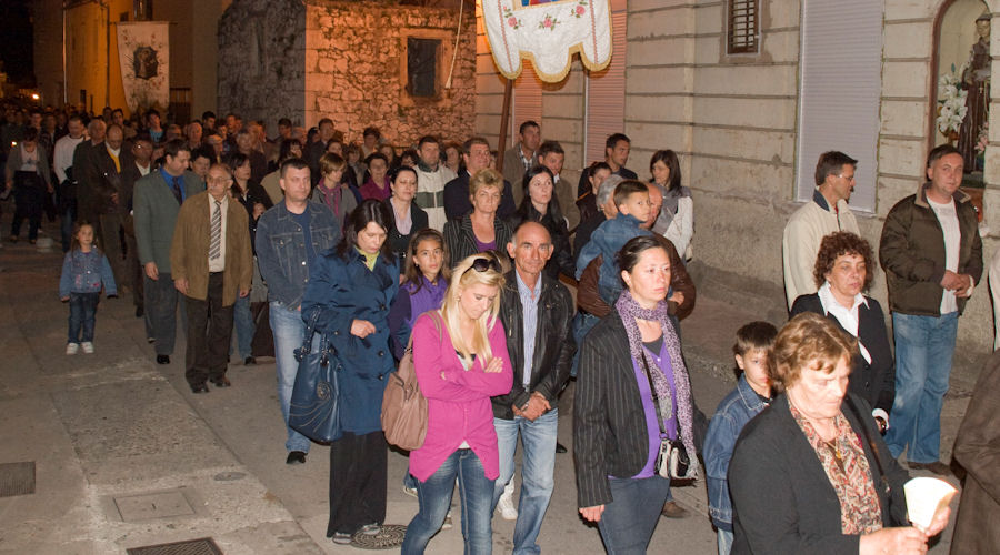 23.4.2011. - U dvjema procesijama što su se večeras kretale gradskim ulicama sudjelovale su tisuće građana. Teško je procijeniti koliko ih je bilo, ali najmanje pet-šest tisuća, jest jer su u vrijeme njihova održavanja ostale gradske ulice bile gotovo puste. Procesijama su prethodili obredi Velikoga petka, nakon kojih se masa vjernika uputila gradskim ulicama. Mi smo uspjeli načiniti fotoreportaže iz obiju župa.