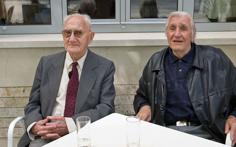 S druge strane Trga, pred Hotelom Narona, zatekli smo šjor Antu Gluščevića i šjor Dražena Pivca. Izgleda da je šjor Ante (koliko znamo) od jučer najstariji Metkovac jer smo baš jutros dobili vijest da je u 99. godini umro naš sugrađanin šjor Frane Dragović, godinu dana stariji od šjor Ante.