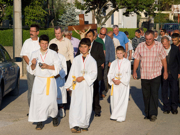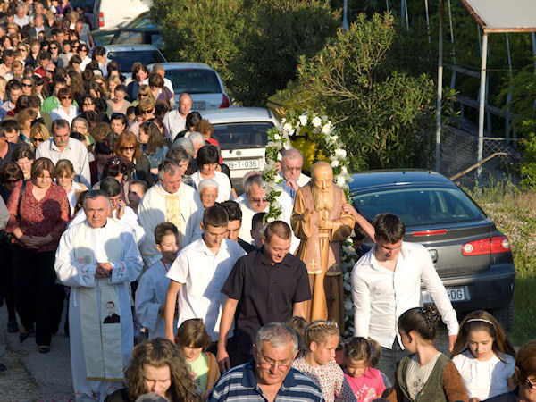 Metković, 13.5.2011. - Svečanom svetom misom s procesijom jučer je u Prudu proslavljen Sv. Leoplod. Uz župnika don Mladena Margetu i župnike okolnih župa na svečanosti su bili i bivši župnici župe Vid don Stanko Vrnoga i don Jure Marasović.