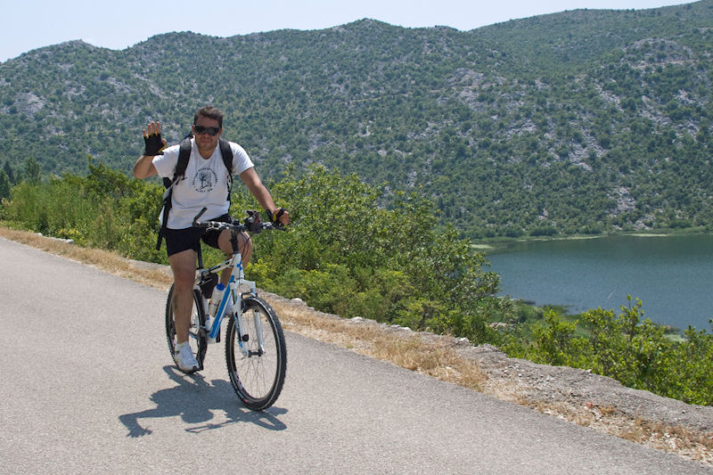 31.5.2011. - Danijel Lacko i njegova ekipa, koja je 5. travnja iz Savudrije krenula obilaziti hrvatsku obalu i zaleđe, smjerovima izabranima tako da ispisuju englesko welcome, danas je nešto prije podne na malograničnom prijelazu Vukov klanac ušla na područje doline Neretve. Mi smo ih dočekali nad jezerom Kuti i popratili dio puta.