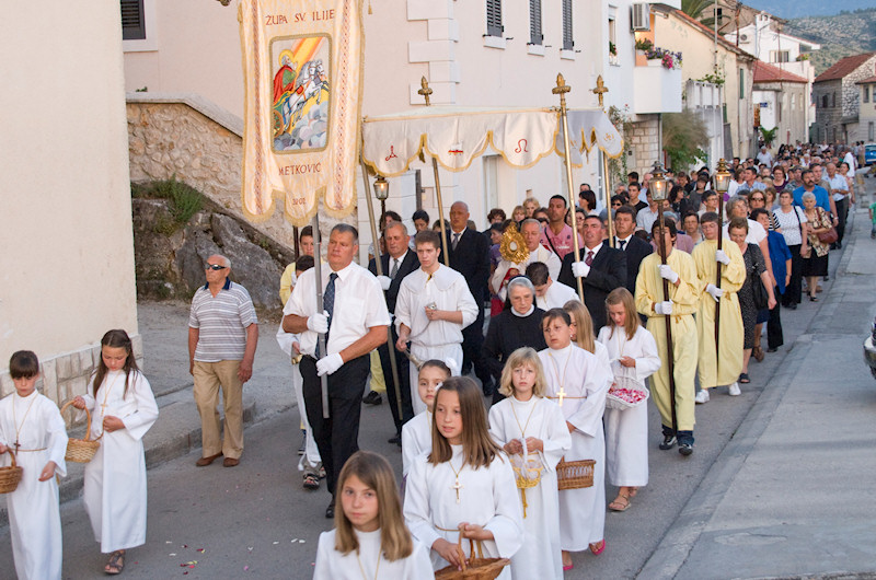 Metković, 24.6.2011. - U ovome tjednu praznika i blagdana jučer smo proslavili Tijelovo. U svim župama na području Metkovića služene su mise, nakon kojih su krenule procesije. Mi smo popratili onu u župi sv. Ilije.
