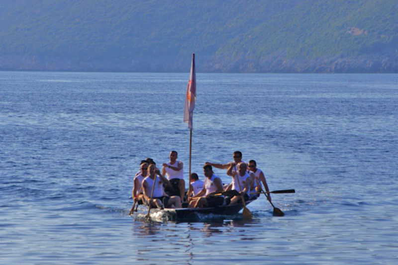 Metković, 24.6.2011. - Jučer smo izvijestili da su članovi Udruge veterana IV. gbr. iz Metkovića krenuli na Prevlaku odakle će veslati do Maslenice. Branko Markota, član te udruge i Udruge lađara Neretve poslao nam je fotografije s rta Oštro, s kojega su jutros rano krenuli na put od 30 km do Cavtata i još 12 km do Dubrovnika gdje se očekuju pred podne.