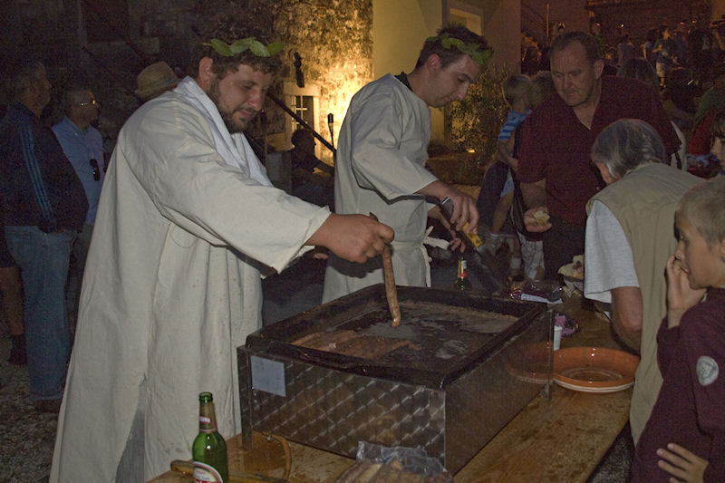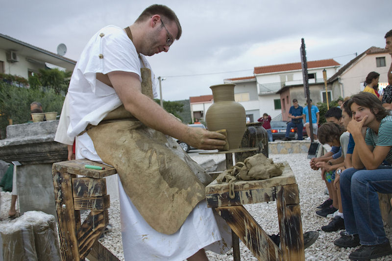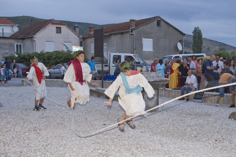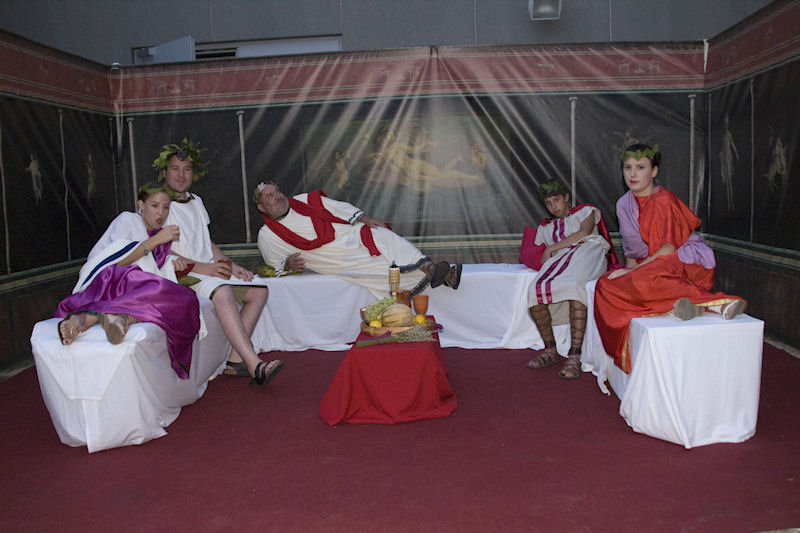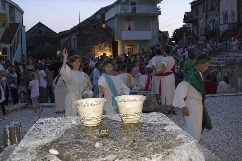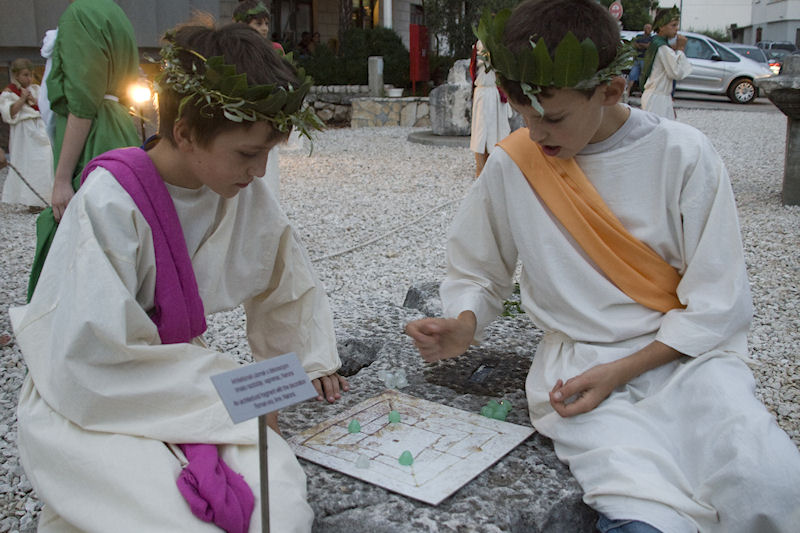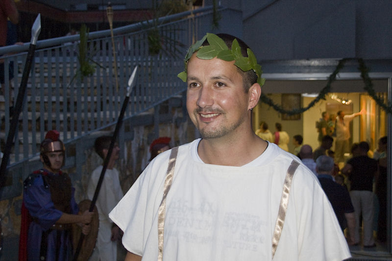 Uspjehu manifestacije svakako je pridonijela sretna okolnost da je Muzej smješten u Vidu čiji stanovnici podupiru njegovo djelovanje i smatraju ga „svojim“. Već pri dolasku u Vid među mnoštvom zamijetili smo brojnu djecu i odrasle odjevene u rimskome stilu, a kako bi slika bila autentičnija pobrinule su i žudije župe Gospe Snježne. Na neveliku prostoru pred Muzejom bilo je postavljeno desetak štandova na kojima se odvijao život sličan nekadašnjem. Kovač je kovao sitne željezne predmete, klesar u kamen urezivao slova rimske kapitale, uređivale su se frizure kao na pompejskim freskama, lomili kamenčići i slagao mozaik, a na drugim štandovima nudila se hrana, kolači i pića spravljena prema rimskoj recepturi. Sve to je iz posebne lože promatrao Cezar sa svojom svitom dokono se izležavajući prebacujući težište tijela s jednoga boka na drugi.