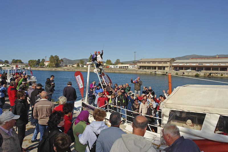 15.10.2011. - Dvjestotinjak raspjevanih slovenskih turista na dvama brodovima danas je doplovilo Neretvom do Metkovića te se iskrcalo na Velikoj rivi. Da šušur bude veći pobrinuli su se dubrovački umirovljenici koji su se na Trgu kralja Tomislava iskrcali iz dvaju autobusa.