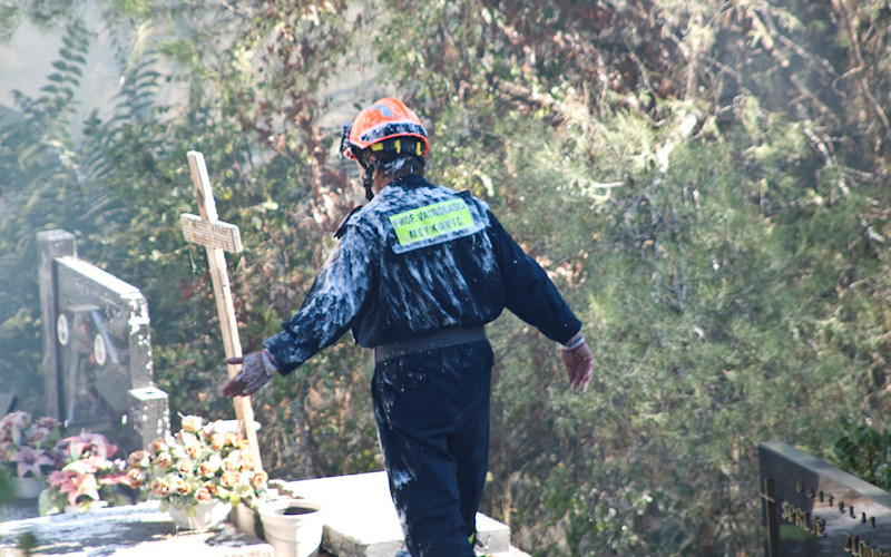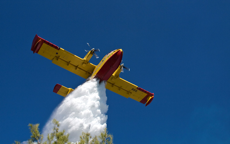 Oko 13,30 na teren je izašla malobrojna pričuvna ekipa kojoj je samo uspjelo spasiti Gradsku mrtvačnicu jer su njenim olucima već počele gorjeti nakupljene suhe borove iglice. Dok je pričuvi stiglo pojačanje vatra je već zahvatila oko dva hektara borove šume i ugrozila najbliže kuće, no na sreću na vrijeme je pozvana zračna potpora pa su dva kanadera do trenutka kada ovo pišemo (oko 17 sati) već izvela tridesetak naleta, a izgleda da će gasiti sve dok im to svjetlosni uvjeti budu omogućavali pa će zajedno s jedinicama na tlu požar najvjerojatnije do noći biti pod kontrolom.