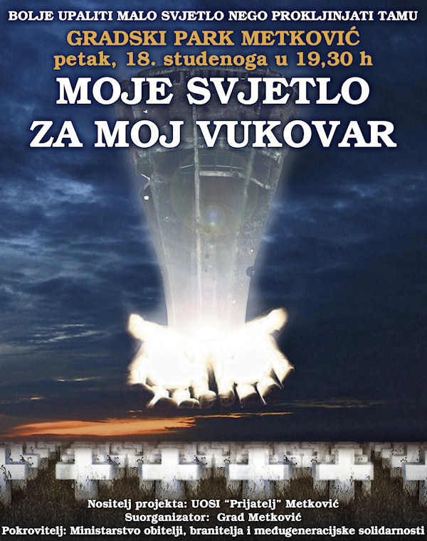 17.11.2011. - Udruga osoba s invaliditetom Prijatelj iz Metkovića i ove godine u sklopu projekta Moje svjetlo za moj Vukovar organizira paljenje svijeća u spomen na žrtvu Vukovara.