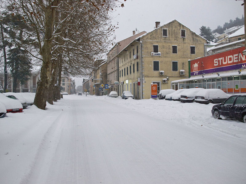 3.2.2012. - Do deset sati jutros napadalo je oko 25 cm novoga snijega pa je ukupna visina prešla 30 cm. Promet se središtem grada odvija relativno normalno, ali problema ima u mnogim ulicama gdje snijeg nije ugažen. U jednome trenutku nakratko je došlo do prekida u električnom napajanju, ali je kvar vrlo brzo otklonjen.