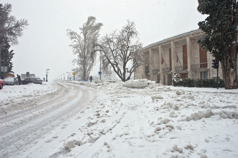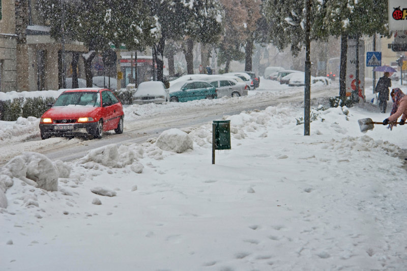 4.2.2012. - Nakon ledene kiše koja je sve okovala nastavio je padati gust snijeg pa je situacija u gradu potpuno kaotična. Ceste se gotovo nikako ne održavaju pa su uskočili metkovski građevinari sa svojim strojevima, a u središtu grada zatekli smo i metkovskoga gradonačelnika Stipu Gabrića kako svojim traktorom s ralicom pokušava raščistiti snijeg na najfrekventnijim raskrižjima u središtu grada.