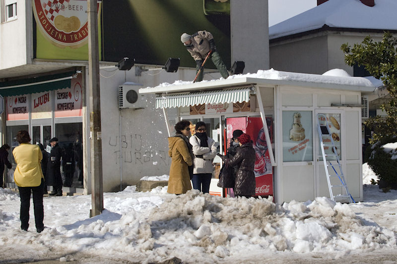 Izgleda da su i građani ozbiljnije shvatili upozorenja o novome snježnome valu. Čisti se stari snijeg s mjesta gdje je to moguće, a živo je i u trgovinama u kojima se nabavljaju zalihe za nekoliko dana.
