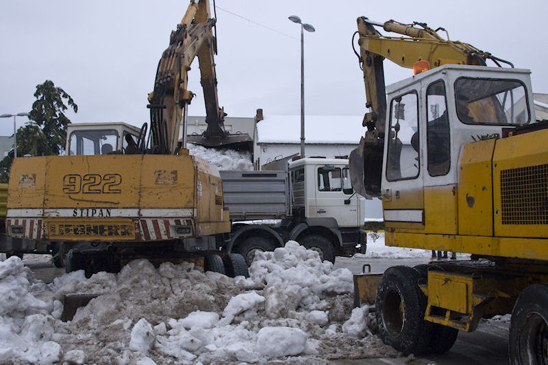 10.2.2012. - Akcija uklanjanja snijega s gradskih ulica nastavljena je sve do u noć, međutim posao sporo ide jer treba s njih odvesti ogromne količine snijega. Više kamiona, čiji teretni prostor prima oko 18 metara prostornih, trebalo je za odvesti snijeg samo s raskrižja A. Stračevića, Matice hrvatske i Kralja Zvonimira.