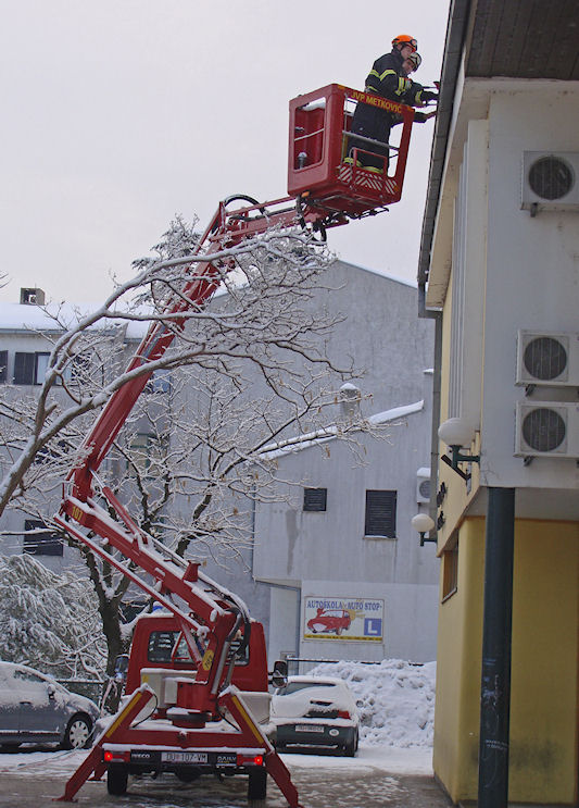 16.2.2012. - Novi centimetri snijega jutros su naveli ravnatelje metkovskih škola da u pomoć zovnu naše vatrogasce koji su očistili led iz žljebova i snijeg u njihovoj blizini kako bi voda nesmetano otjecala. Za sada se metkovski krovovi, uglavnom, dobro drže, a kada nije propao ovaj s fotografije iz prethodne vijesti nadamo se da neće ni neki noviji.