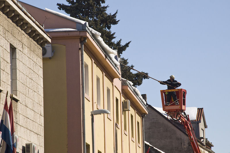 18.2.2012. - Iz Gradskoga gospodarstva zamoljeni smo da još jedno ponovimo upozorenje građanima da se čuvaju od snježnih odrona s krova. Naročito stalno treba upozoravati djecu. Na mnogim mjestima već su postavljene trake upozorenja, a vatrogasci snijeg skidaju s najkritičnijih mjesta, no posao im je ograničen na javne ustanove jer nema više vozila s košarama.