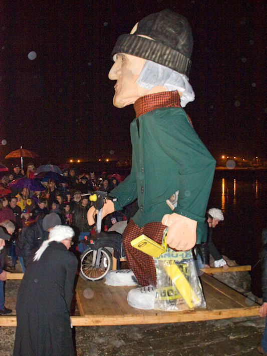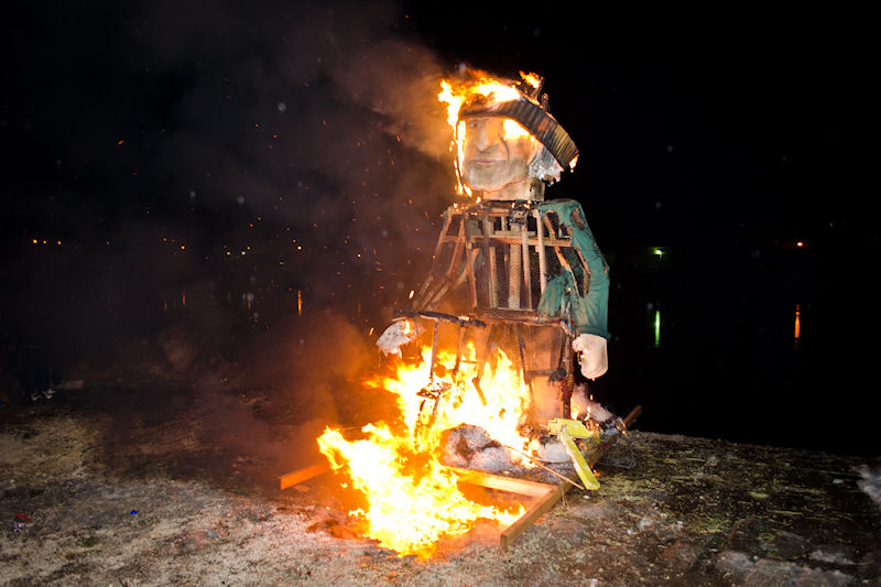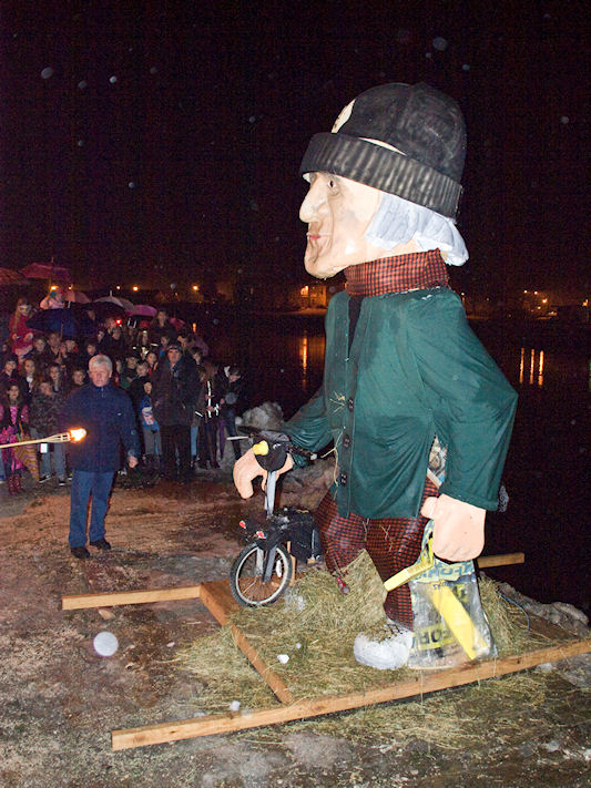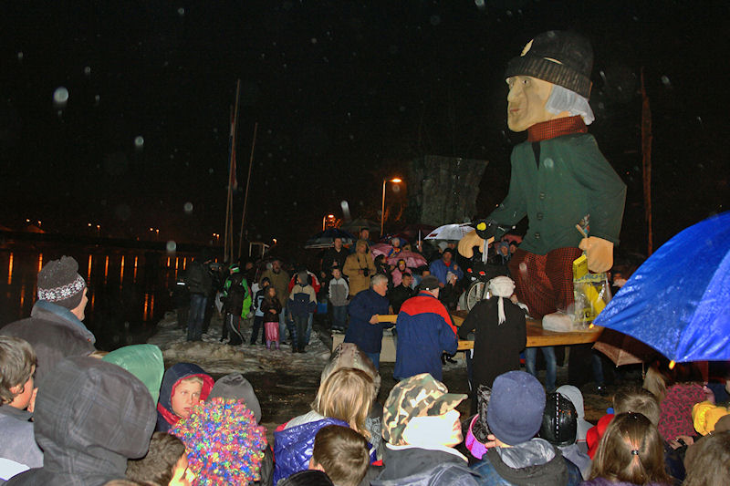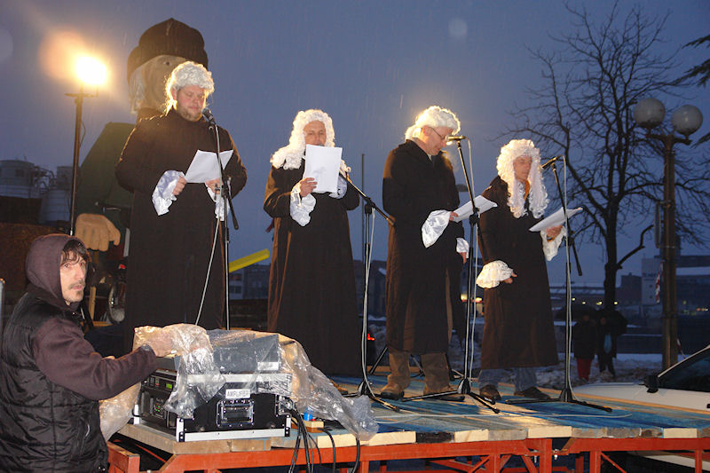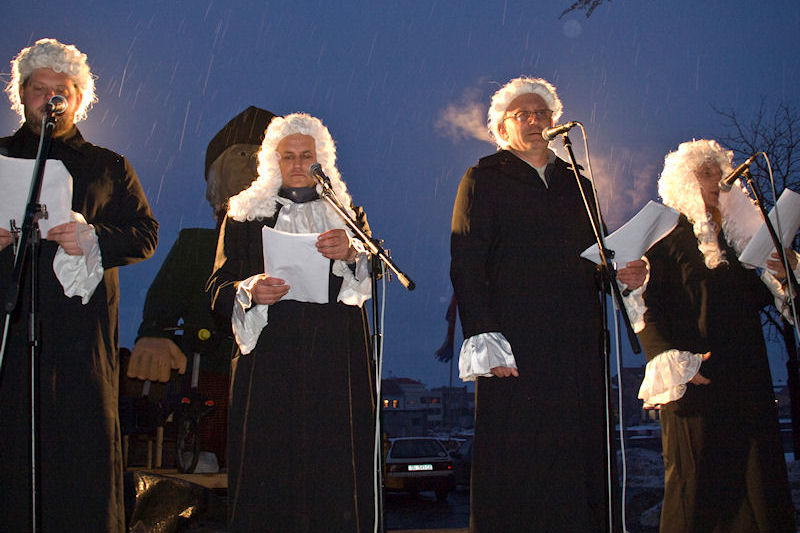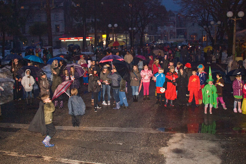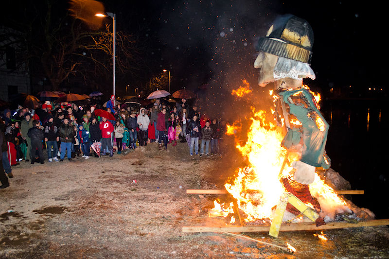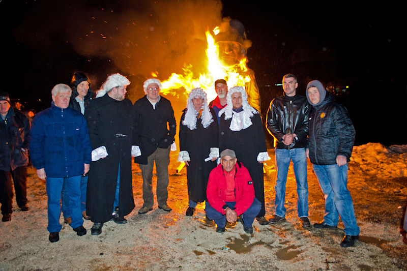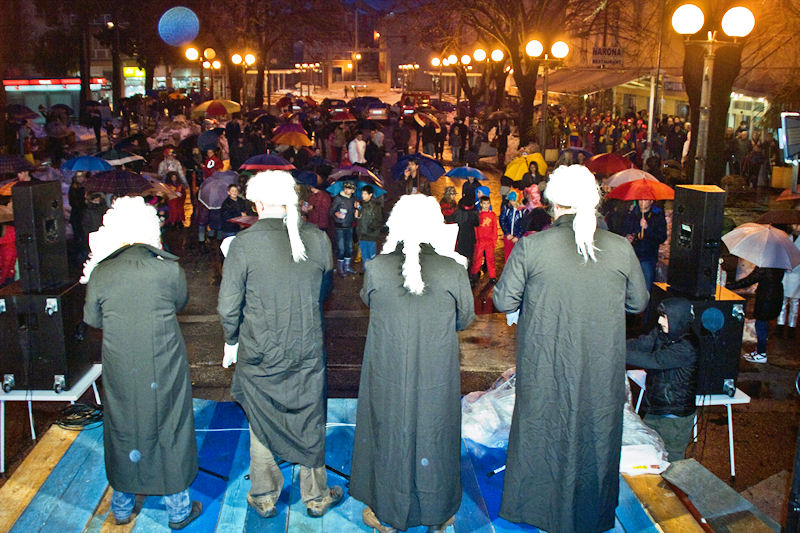 21.2.2012. - Nekoliko tisuća maškaranih okupilo se večeras na Trgu kralja Tomislava kako bi u krajnje napetoj atmosferi pratilo suđenje Marku Krnjevalu kojega se tereti za sve što nas je snašlo protekle godine, uključujući i ovogodišnji lanjski snijeg.
