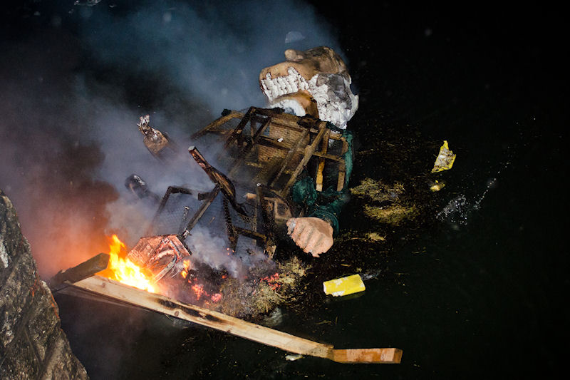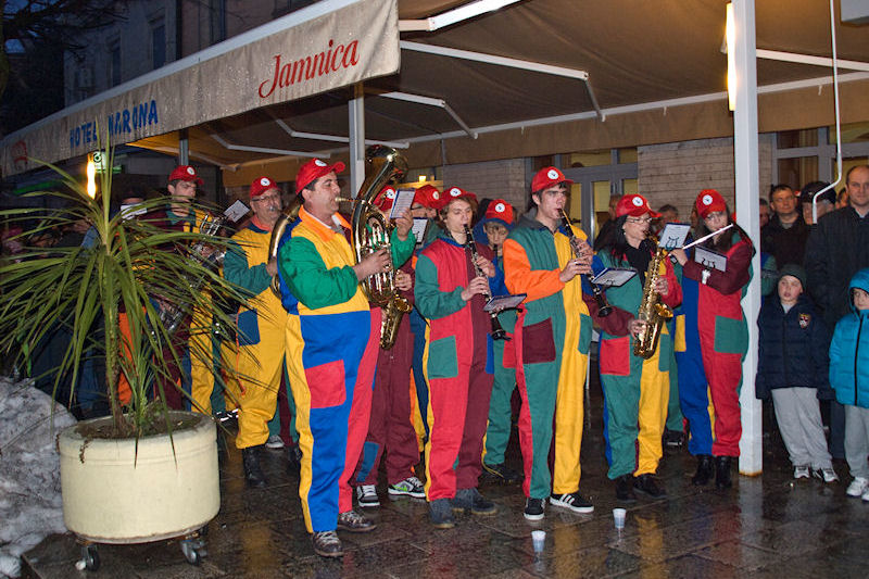 Ipak, unatoč lošem vremenu, na Trgu se okupilo nekoliko stotina građana, među kojima je bilo i maškarane djece. Stvar je donekle spasila velika tenda pred Hotelom Narona pod koju se sklonila Gradska glazba sa svojim instrumentima te mnogi građani s djecom. Promrzlima su se na stolovima nudili tradicionalni uštipci i vino pa je praćenje suđenja bilo lakše. Na ubrzanom procesu Marko je proglašen krivim pa je uz zvuke posmrtnoga marša ispraćen do Velike rive, jer je na Maloj još dosta snijega i poledice, s koje je nakon paljenja gurnut „neka ga Neretva nosi“. Iako je u Hotelu Narona bio pripremljen besplatan grah sa suhim mesom, a Kante je sponzorirao vino, većina se odlučila za bijeg u toplinu doma.