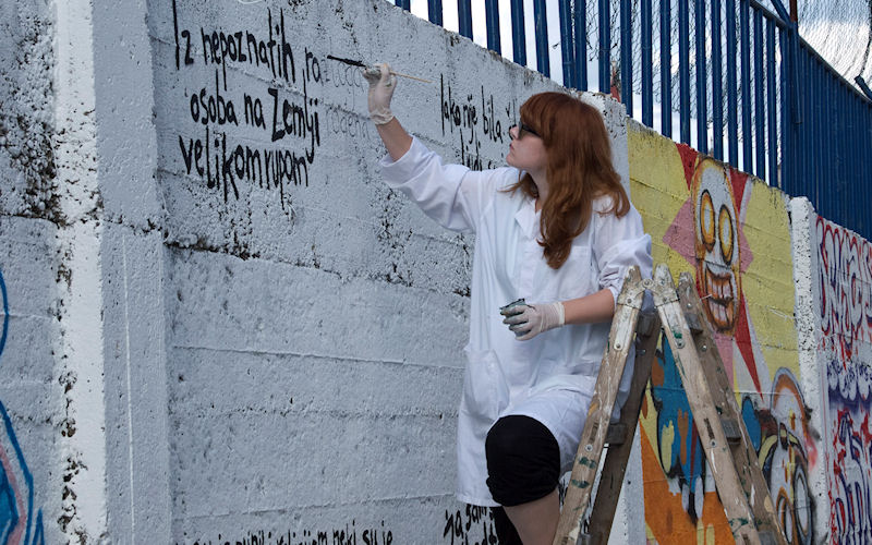Eto, slučajno ili ne, jedan od murala nosio je poruku koju nam je je Ivan Slamnig, rođeni Metkovac, ostavio u svojoj pjesmi Ubili su ga ciglama. Ipak, zid nije ubijen. Oživio je.
