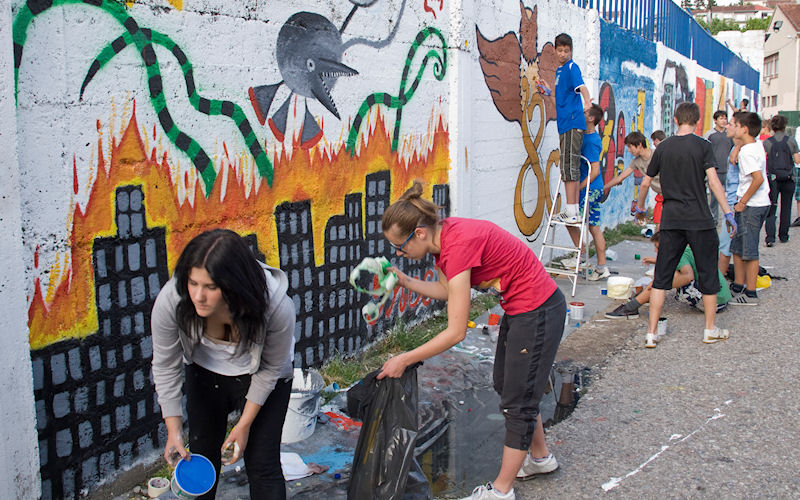 26.5.2012. - Južni zid Neretvina igrališta bio je danas poprište urbanoga događanja koje se može svesti pod Street art, tj. oslikavanje javnih površina. Zid je konstrukcijski podijeljen na dvadesetak segmenata pa je svaki od njih iskorišten za stvaranje jednoga murala.