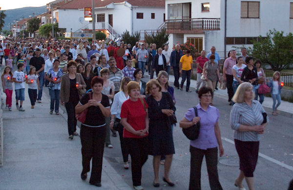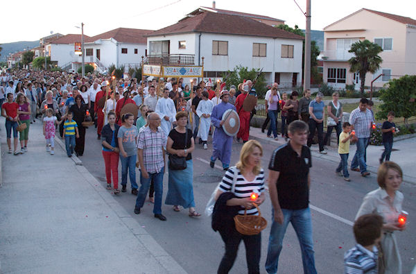 Metković, 7.6.2012. - Večeras su metkovskim župama nakon svečanih misa prošle tijelovske procesije u kojima tradicionalno sudjeluje velik broj vjernika. Mi smo ove godine popratili procesiju u župi sv. Nikole Biskupa na desnoj strani grada.
