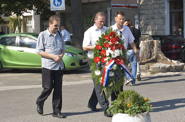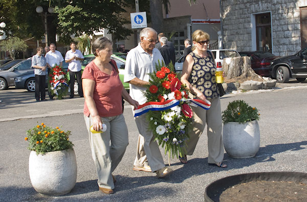 Vijence su položili gradonačelnik Gabrić sa svojim zamjenicima, predstavnici političkih stranaka i udruga proizašlih iz Domovinskoga rata. Prije toga su pred Središnjim križem na Gradskom groblju sv. Ivana Nepomuka također položeni vijenci i upaljene svijeće, a za sve poginule branitelje i civilne žrtve kratak vjerski obred održao je župnik župe sv. Ilije fra Petar Gulić.