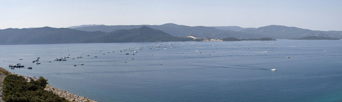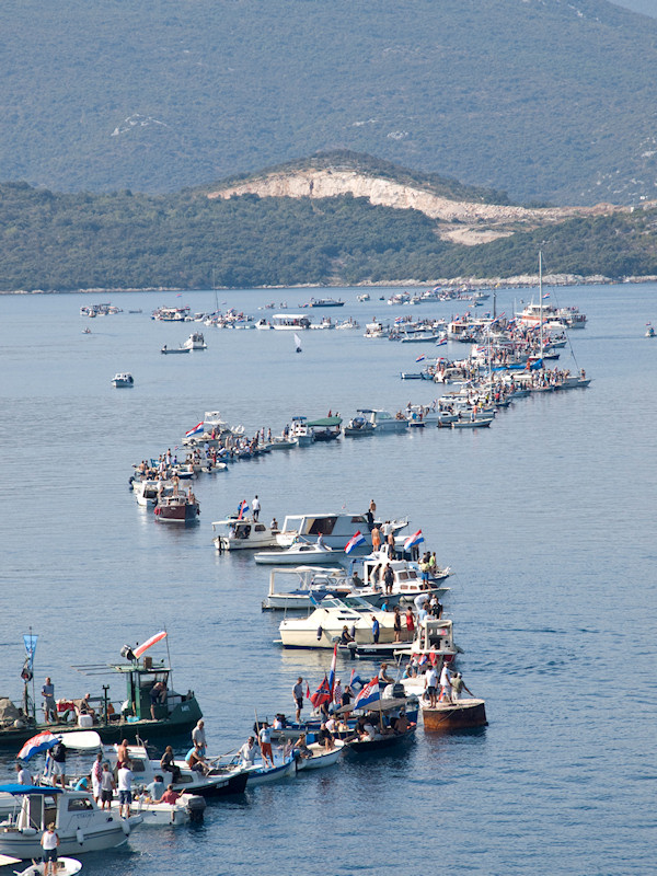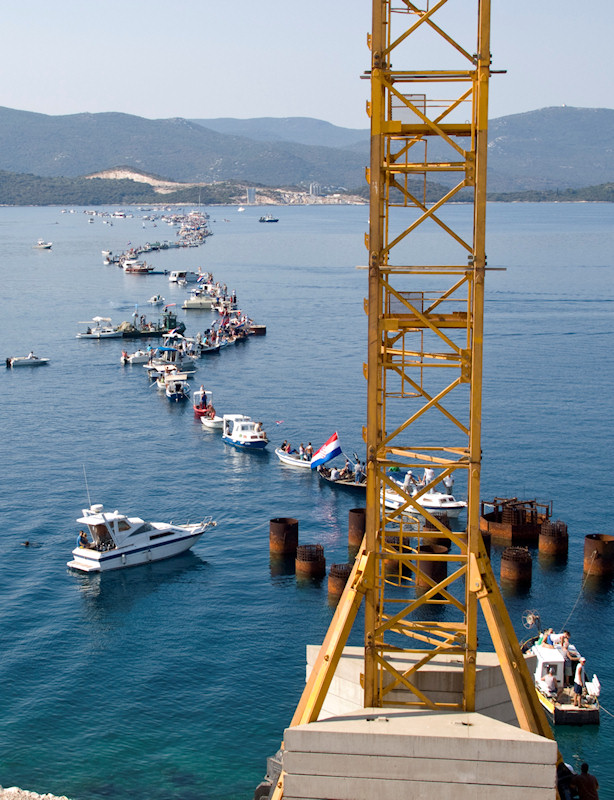 9.9.2012. - Akcija spajanja Južne Hrvatske pomoću povezanih neretvanskih lađa, brodica i brodova te drugih manjih plovila uspješno je izvedena danas na trasi budućega Pelješkoga mosta između Komarne, tj. Duboke i Brijeste na Pelješcu.