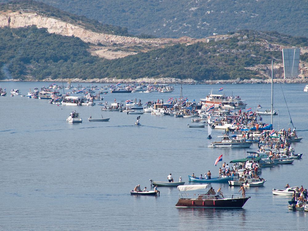 Događaj je s obale pratio velik broj građana, među kojima su uočeni i mnogi pripadnici braniteljskih udruga.