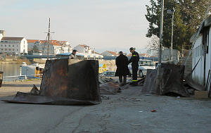 1.1.2005. - Inače mirnu noć na prijelazu iz 2004. u 2005. narušio je požar u kojemu je na gradskoj tržnici u potpunosti izgorjela prodavaonica ribe u vlasništvu tvrtke "Jambo". Požar je počeo oko 23:25 i bez obzira na vrlo brzu intervenciju vatrogasaca nije se mogao ugasiti. Razlog tome je što se s gašenjem čekalo dok se ne isključi električna struja, a kasnije je vatra bila prejaka jer je počeo gorjeti izolacijski materijal u rashladnim komorama za ribu. Kako je očevid krim policije u tijeku nisu se mogle dobiti službene informacije, no od stanara susjednih zgrada čuli smo da je požaru prethodila jaka eksplozija, a navodno nakon nje još jedna. Da je eksplozije bilo dokaz su metalna vrata na stražnjem dijelu objekt koja su odletjela gotovo do Neretve, a krhotine stakla s prednje strane zasule su skoro cijelu tržnicu.