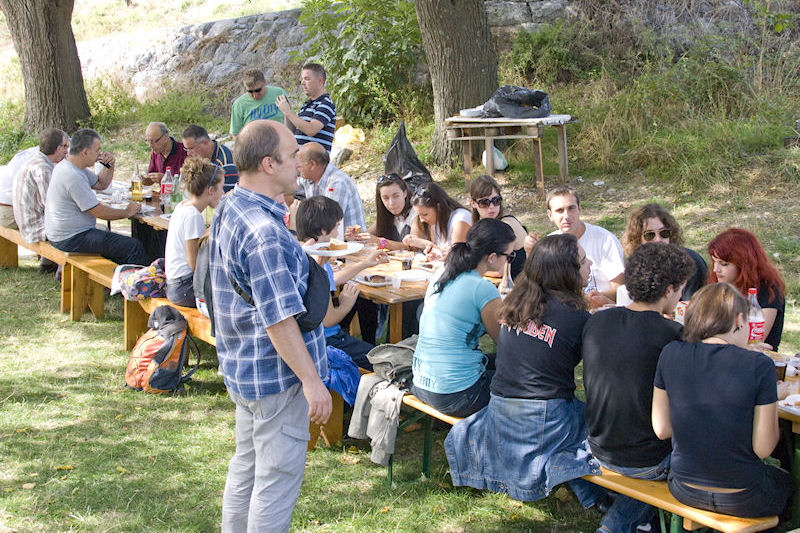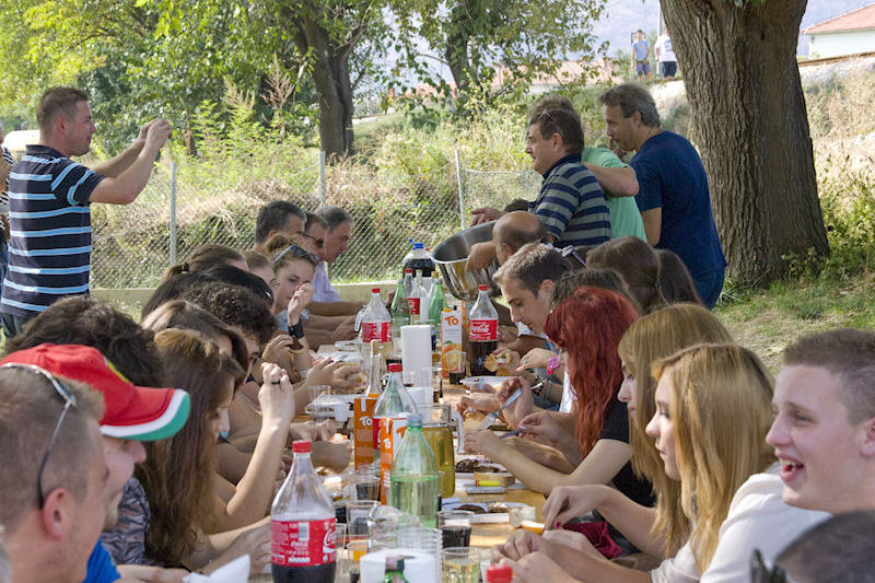 U hladu stoljetnih murava gosti i domaćini prvo su se okrijepili, a potom su se okrenuli sportu: mladi nogometu i košarci, a stariji drvenim bućama. Oni kojima je, ipak, bilo prevruće spustili su se do Neretve ili činili publiku.
