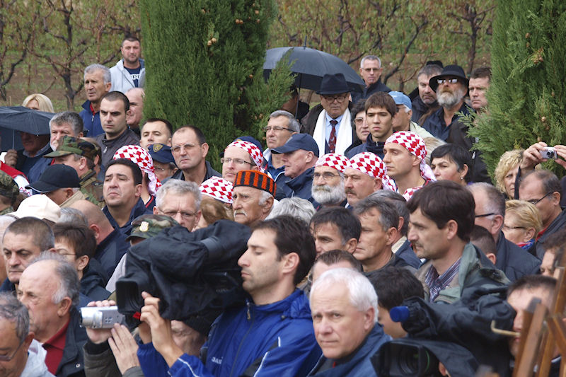 Unatoč ružnu vremenu i gotovo stalnoj kiši u Škabrnji su se bile okupile tisuće. Prema registracijama automobila, autobusa i motocikala te prema brojnim ratnim zastavama raznih postrojba činilo se da nema toga kraja u Hrvatskoj otkuda bivši branitelji i drugi građani nisu došli u Škabrnju, a zamijećen je i nemali broj onih koji su stigli iz Bosne i Hercegovine. Svi oni bili su se došli pokloniti sjenama ljudi koji su do rata mirno i marljivo obrađivali svoja plodna polja. Činjenica da je Škabrnja bila čisto hrvatsko selo i da se uspješno razvijala, izgleda, stvorila je zavist u susjednim srpskim selima. Kada je „kucnuo čas“ komšije su, potpomognute snagama JNA, znale što činiti sa susjedima.