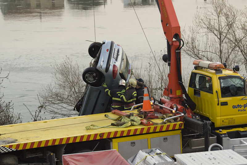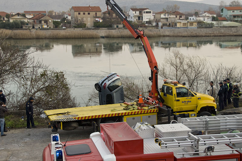 Na drugome kraju doline, na izlazu iz Metkovića prema graničnome prijelazu Metković-Doljani jutros je oko 4.20 na državnoj cesti D9 vozač peugeota 206 splitskih oznaka najprije udario u rasvjetni stup i betonsku arlu od koje se automobil odbio na drugu stranu ceste i završio u Neretvi. U nesreći je, kako smo čuli, stradao mladi policajac koji je iz Slavonije došao na službu u Metković. Ronioci JVP Metković čeličnim su užetom vezali potonulo vozilo koje je autodizalica potom izvukla na površinu. Najvjerojatniji uzrok nesreće je velika brzina u zavoju na skliskom kolniku. Očevid je u tijeku.