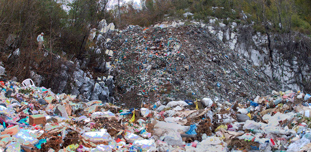 Prije nekoliko mjeseci bio sam nad tom jamom i, zaustavljajući dah, načinio donju fotografiju. O kolikoj je jami (gotovo zatrpanoj otpadom) riječ, svjedoči ljudska figura u šumici lijevo, s tim da u objektiv nije ušla cijela širina grotla.