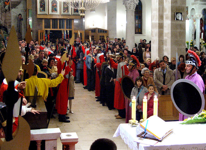 24.3.2005. - Danas je Veliki četvrtak, prvi dan Svetog trodnevlja. Kao i ostali katolici širom svijeta i Metkovci se na današnji dan sjećaju Večere Gospodnje i ustanovljenja Euharistije. U crkvi Sv. Ilije na Misi večere Gospodnje koju je predvodio župnik fra Dušan Džimbeg sve se odvijalo po davno ustanovljenim pravilima, od župnikova pranja nogu dvanaestorici bratima koji predstavljaju apostole, do ulaska žudija u crkvu i pjevanja pučkih napjeva koji se mogu čuti samo na Veliki Četvrtak. Na kraju Mise pjevao se Gospin plač, a u 23 sata započet će Getsemanska ura u spomen na Isusovu agoniju u Getsemanskom vrtu. Od danas do ponoći na Uskrs zvona se neće oglašavati nego će ih zamijeniti drvene naprave – čevrtalji – kojima će djeca označavati uru na koju se zvona javljaju.