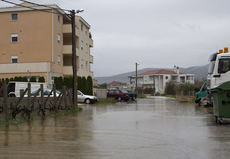 Jutros smo ponovno obišli neke dijelove grada na desnoj strani. Cestom prema Vidu se još prolazilo, a oni koji nisu sigurni da će proći to još mogu preko Glibuše ulicama Put Vida i Neretvanskih gusara, mada i na njima dijelom leži voda. Pretpostavljamo da se u Zagrebačku više ne može s Jerkovca, dok se njenu kraju (Crni put) voda gotovo poravnala s asfaltom. Nije baš preporučljivo voziti ni Ulicom Nikole Tesle.