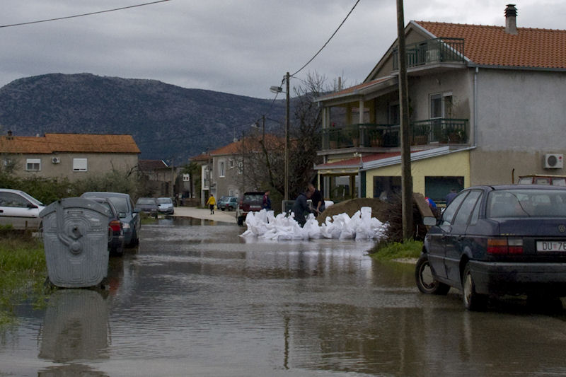 Na desnoj strani grada poplavne vode u laganom su porastu pa su se mnogi već počeli pripremati i za najgore. Zamijetili smo da se ugroženome stanovništvu kamionima razvozi pijesak kako bi se njime punile vreće, a neki saniraju oštećenja na svojim čamcima za koje su mislili da im neće trebati do ljeta. Mi smo obišli dijelove Zagrebačke i Duvrata te načinili nekoliko fotografija.