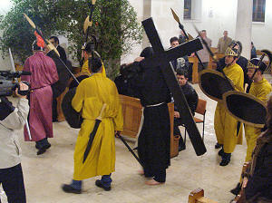 25.3.2005. - Unatoč kiši koja je danas padala gotovo cijeli dan u procesiji na Veliki petak sudjelovalo je nekoliko tisuća vjernika. Procesija se tradicionalno održava nakon Mise u crkvi Sv. Ilije i prolazi starim dijelom Metkovića uz sudjelovanje žudija i Šimuna koji bosonog na leđima nosi teški križ. Procesija je završila ponovno u crkvi gdje se nastavilo s pjevanjem pučkih napjeva među kojima je najpoznatiji "Prosti, Gospodine" kojega je klečeći otpjevao Stipo Pipinić, dugogodišnji solist u crkvenome zboru. Za sve one koji nisu mogli danas biti u Metkoviću donosimo malu fotoreportažu.