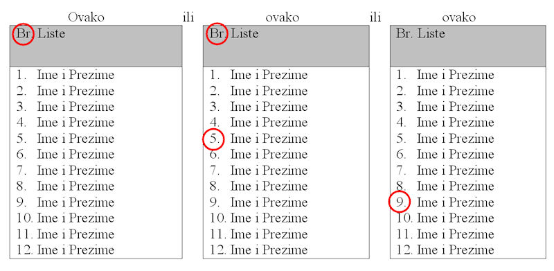 Na tome glasačkom „listiću“ abecednim je redom navedeno 28 kandidacijskih lista, svaka s po 12 imena. Sviđa li vam se cijela lista dovoljno je zaokružiti njezin broj, a ako vam se na njoj posebno sviđa neko ime možete ga dodatno zaokružiti (samo jedno ime). Moguće je da vam se neko ime sviđa, a da se nalazi u vama neprihvatljivome okruženju. Tada ćete zaokružiti samo ime na listi, a ne i samu listu.