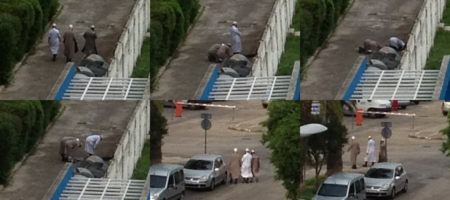 Kako i sam navodi, radi se, vjerojatno, o trojici muslimanskih vjernika koji su se vraćali s otvaranja džamije Rijeci pa ih je obvezno vrijeme za molitvu uhvatilo baš u Metkoviću. Ljudi su uz sjeverni zid Neretvina igrališta pronašli kutak gdje ih nitko neće ometati, obavili svoj kratak obred i krenuli dalje.