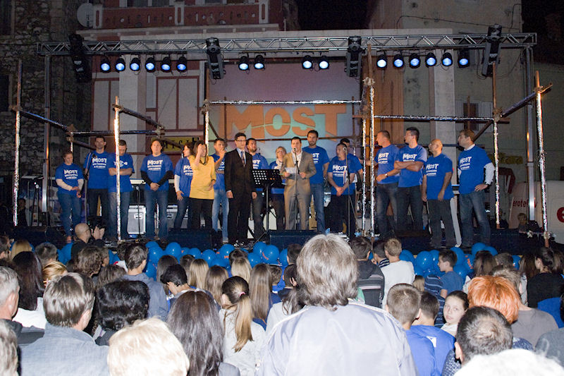 17.5.2013. - Na Trgu kralja Tomislava sinoć je Most nezavisnih lista imao svoj završni predizborni skup na kojemu su se građanima predstavili kandidati Mosta za Gradsko vijeće te kandidat za gradonačelnika Božo Petrov, zajedno sa svojim zamjenicima Katarinom Ujdur i Nikolom Grmojom.
