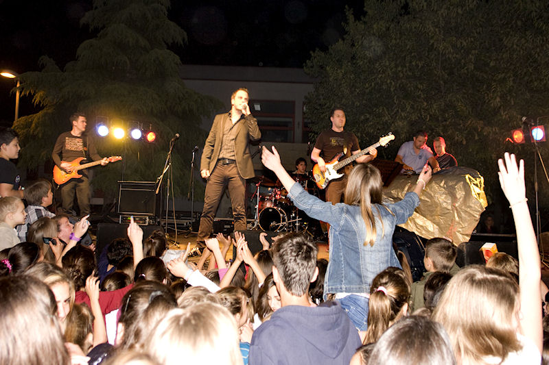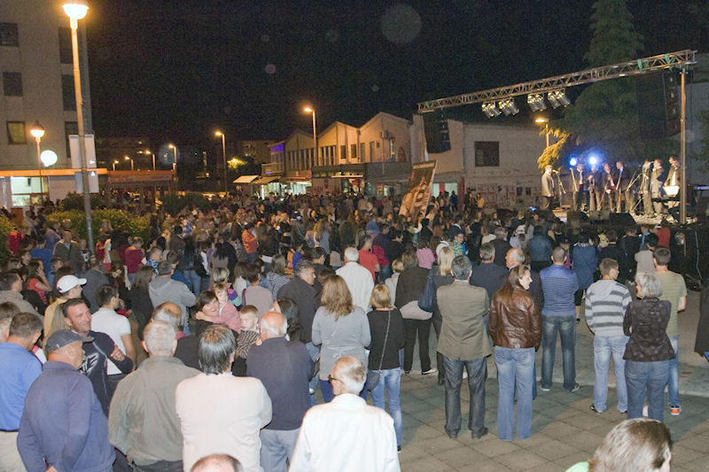 Metković, 17.5.2013. - Na Trgu dr. Franje Tuđmana sinoć su u organizaciji GO HSS-a održani koncerti na kojima su nastupili Klapa Cambi i Ivan Zak. Na prvome je starija publika uživala u dalmatinskoj klapskoj pjesmi, nakon čega su prostor pred pozornicom, ali i na pozornici, osvojili tinejdžeri koji su oduševljeno reagirali na svaku otpjevanu pjesmu Ivana Zaka. Ni kiša koja je prijetila tijekom cijeloga koncerta nije okupljene spriječila da ostanu do kasnih noćnih sati.