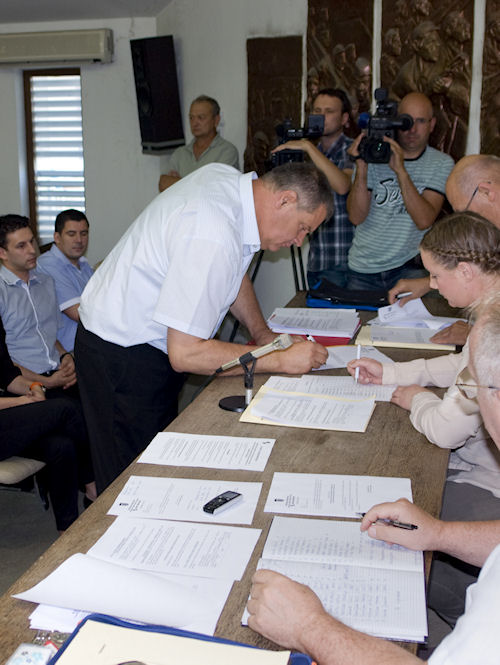 20.6.2013. - Danas je u Zgradi političkih stranaka održana Konstituirajuća sjednica Gradskog vijeća grada Metkovića temeljem rezultata izbora od 19. svibnja. Odlukom predstojnika Ureda državne uprave u Dubrovačko-neretvanskoj županiji Balda Pušića sjednicu je otvorio i na početku vodio Tonći Jerković, tajnik Gradskog vijeća grada Metkovića.