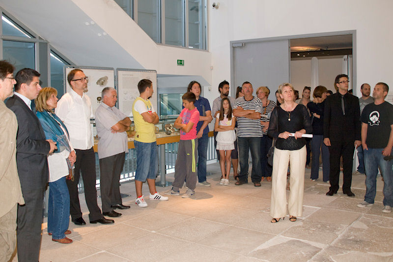 Nakon što je ravnatelj Muzeja Toni Glučina okupljene upoznao s konceptom izložbe o samome postavu izložbe govorila je arheologinja Mira Topić, koja ju je pripremila, dok je akademski slikar i umjetnik stakla Anton Vrlić objasnio kako ga je arheološka građa s lokaliteta Augustej, Forum i Gornje njive inspirirala za novi ciklus u njegovu opusu nazvan Njive.