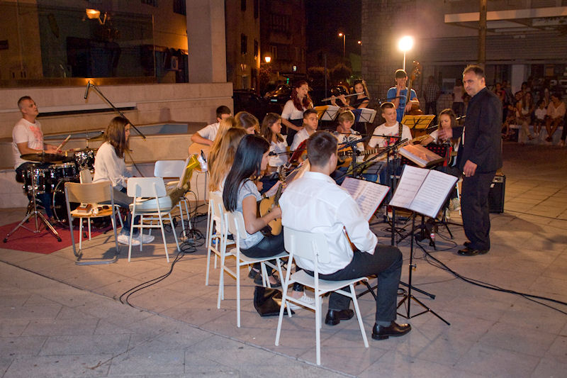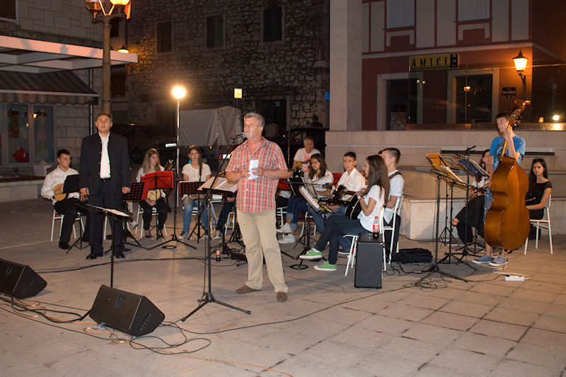 15.7.2013. - U sklopu ovogodišnjega Metkovskoga ljeta sinoć je na Trgu kralja Tomislava pod ravnanjem Tomislava Hercega nastupio Mandolinski orkestar KUD-a Metković kojemu su se pridružili gosti iz Vrgorca i solist Branko Medak.