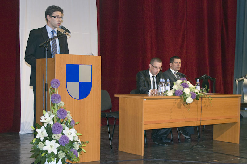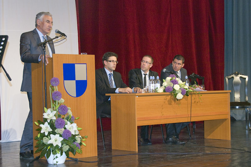 Nakon gradonačelnika je na pozornicu izašao župan Dobroslavić koji se okupljenima obratio s nekoliko prigodnih riječi. Kazao je da naša županija ima što ponuditi Europi i još jednom naglasio nužnost što skorije gradnje Pelješkoga mosta.