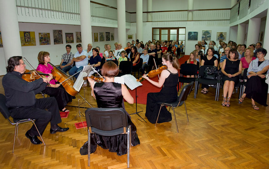 Dragan Rucner na violi, Snježana Rucner na violončelu te Iva Kralj i Ana Paula Knapić Franković na violinama izveli su program koji su sačinjavale skladbe stranih i domaćih autora Wolfganga A. Mozarta, Josipa M. Stratika, Miroslava Miletića, Tomislava Uhlika i Astora Piazzolle, među kojima su se prepoznale obrade poznatih narodnih melodija, što je publika u potpuno ispunjenoj Galeriji nagradila pljeskom.