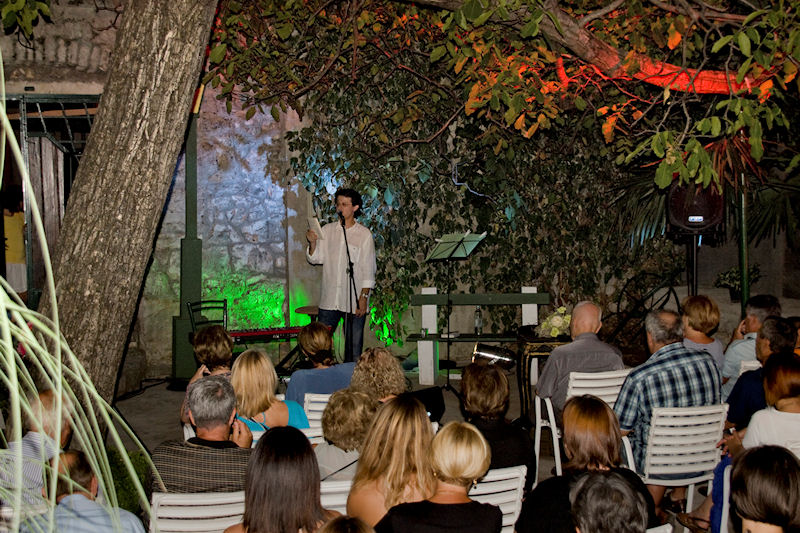 Svojim nekonvencionalnim pristupom publici Matičević je stvorio ugodnu i opuštenu atmosferu u dvorištu pod ogromnim orahom, koje je kao stvoreno za slična događanja.